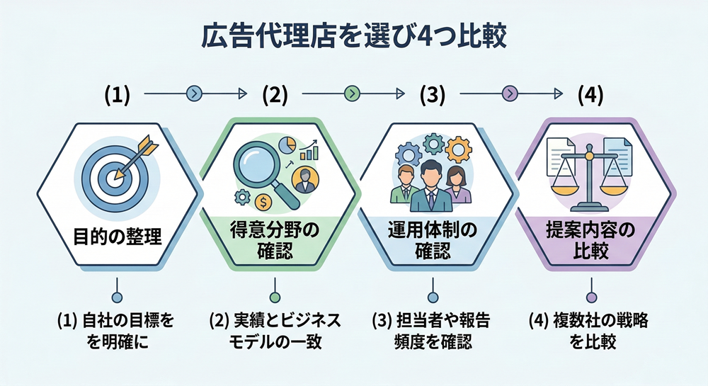 広告代理店を選ぶ際には、単に知名度や価格だけで判断するのではなく、自社の目的に合ったパートナーかどうかを見極める視点が重要です。
