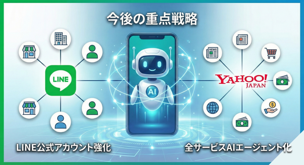 こうした環境変化を踏まえ、LINEヤフーは今後の重点戦略として次の2点を掲げています。