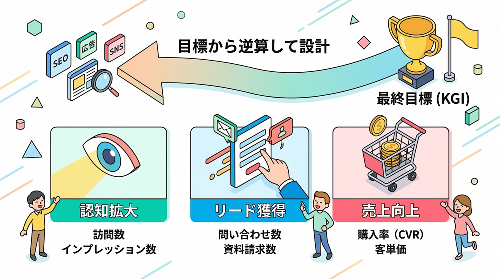 KPI設計で最も重要なのは、最終目標から逆算して指標を設計することです。