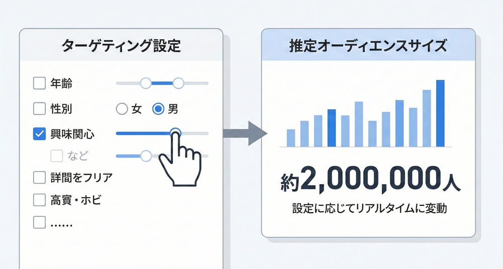 このアップデートにより、広告配信前の段階で「その設定でどれくらいのユーザーに届くのか」を把握できるようになり、配信設計の精度向上が期待されます。