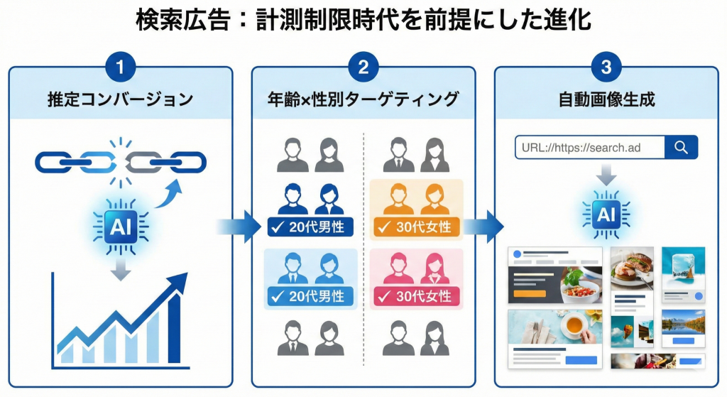 計測制限を前提にした設計へと、検索広告が本格的にシフトしていることが分かります。