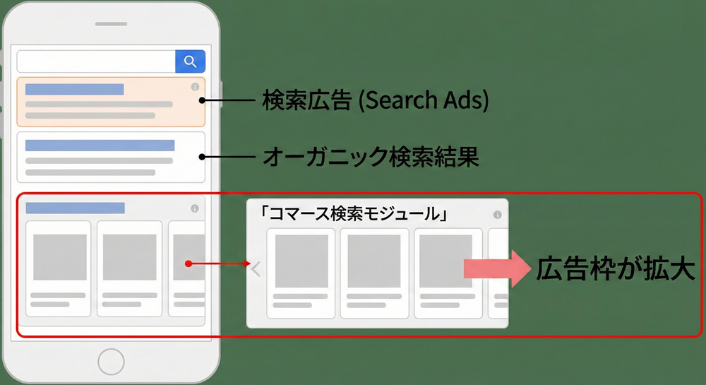 この変更により、検索結果上でユーザーの目に触れる商品数が大幅に増え、EC事業者や広告主にとっては流入拡大のチャンスが広がるアップデートとなっています。
