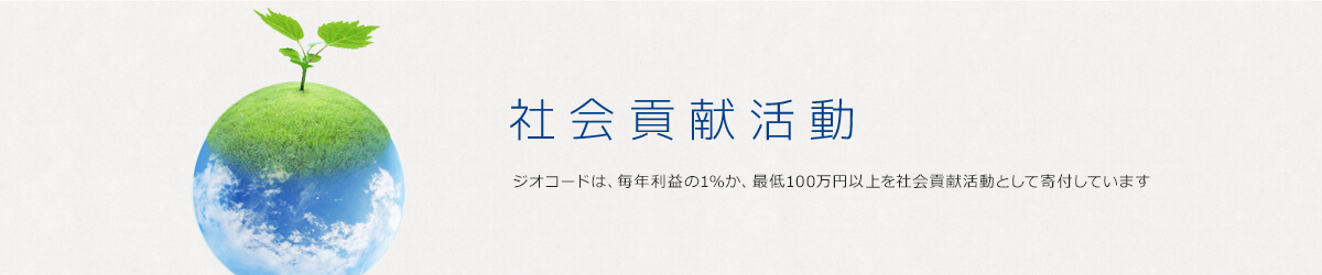 ジオコードは、毎年利益の1%か、最低100万円以上を社会貢献活動として寄付しています。