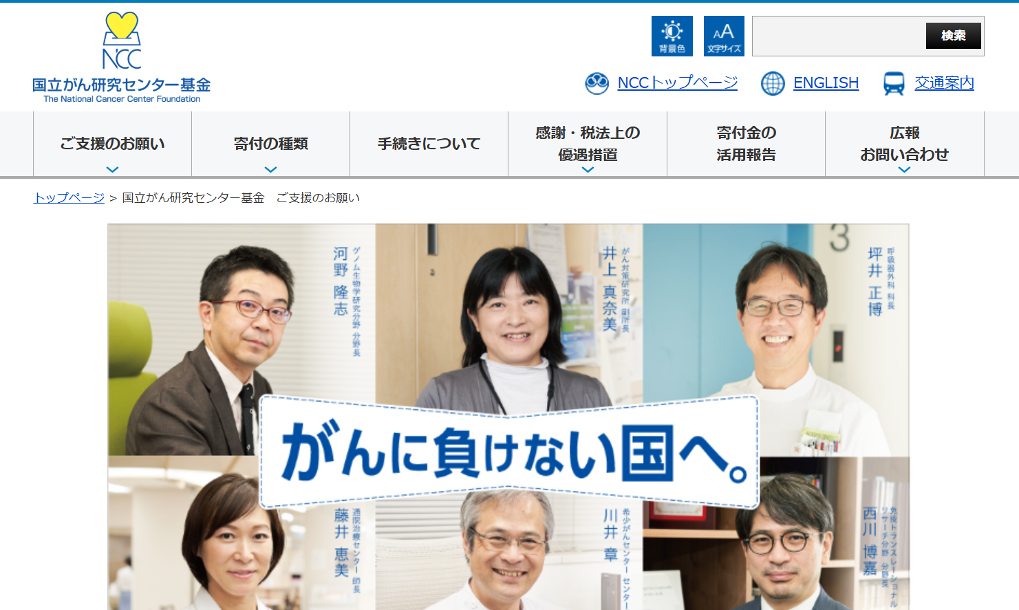 がん研究・がん医療のための寄付。