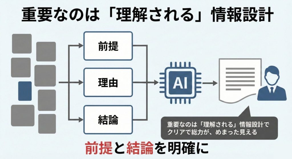 ユーザーやAIが迷わず理解できるように、情報の筋道を明確にすることが成果につながります。
