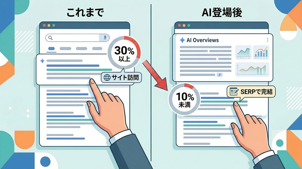 AI Overviewsの登場により、検索は「比較して選ぶ場」から「答えを得る場」へと変化しています。