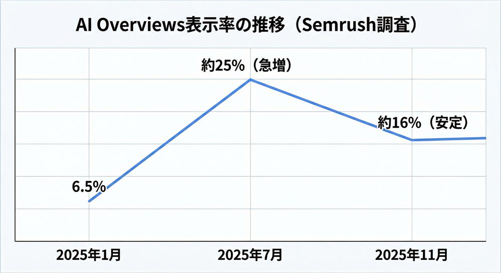Semrushが公表した最新の調査結果からは、「AI Overviewsは減少している」のではなく、より実践的な検索フェーズへ広がっている実態が明らかになりました。
