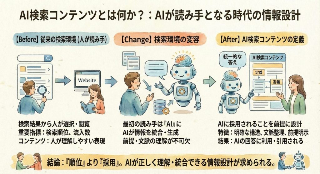 この前提を理解することが、AI検索コンテンツ設計の出発点になります。