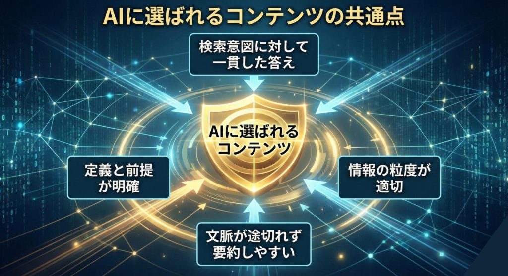 AIに選ばれるコンテンツでは、「これは何についての話なのか」「どんな前提で成り立つ話なのか」が、文章の流れの中で自然に説明されています。
