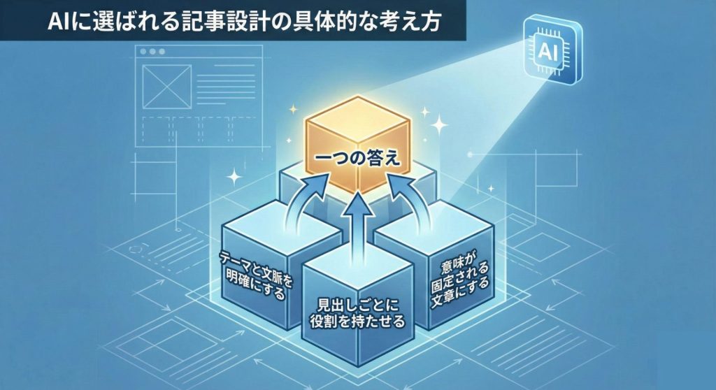 AIに選ばれる記事設計で最も重要なのは、記事全体が一つの答えとして成立しているかどうかです。
