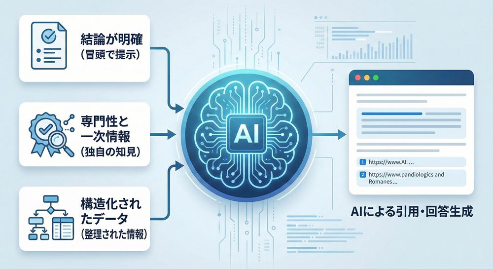 結論を先に示し、その理由を説明する構造は、AIにとって再利用しやすく、要約生成に適しています。