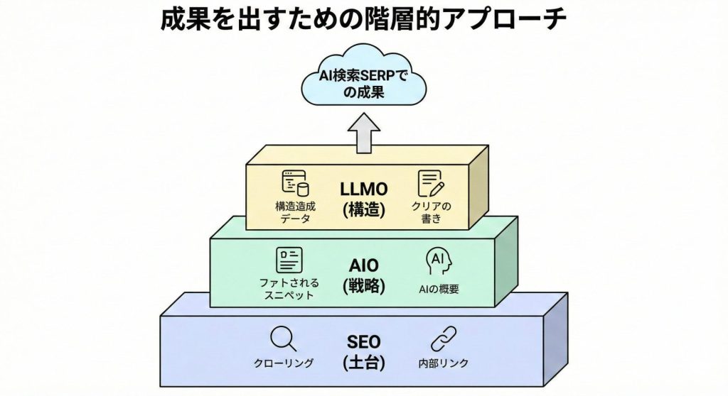 AI検索SERPへの対応は、その上に積み上げる発展的な取り組みです。
