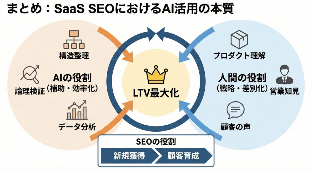 しかし戦略が明確であれば、SaaS SEO×AIは強力なLTV拡張装置になります。