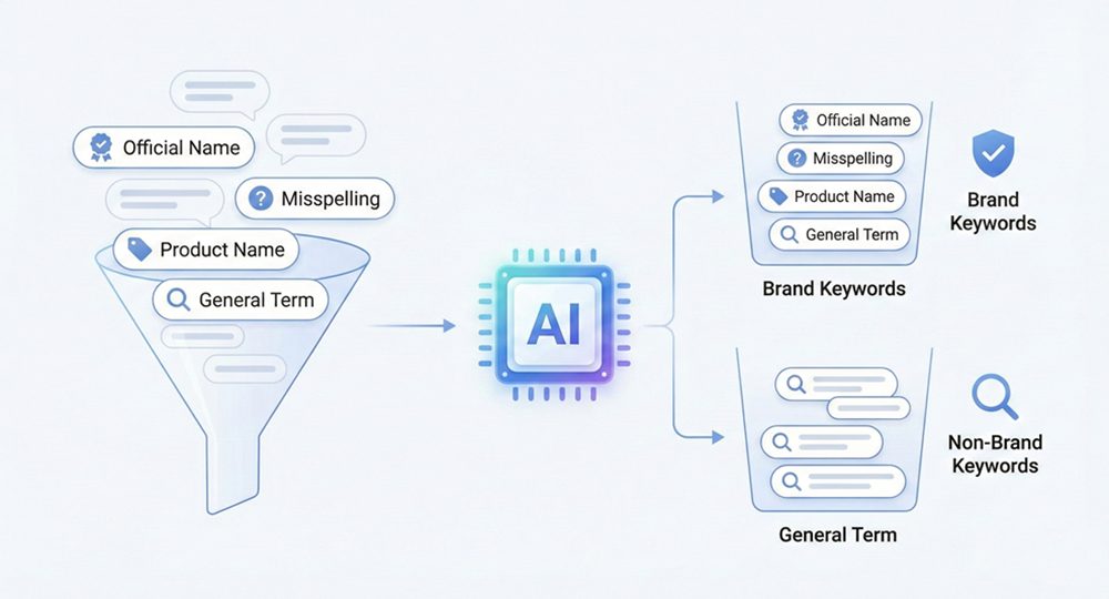 ブランドクエリフィルタの最大の特長は、AIがブランド関連クエリを自動で判別してくれる点です。