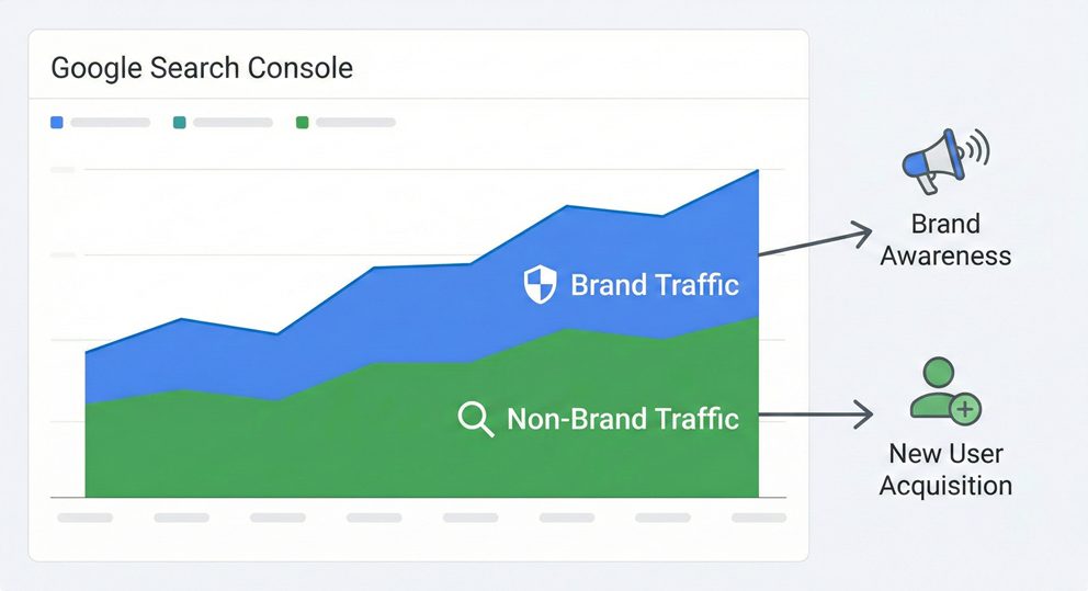 これにより、検索流入が「認知の成果」なのか「新規獲得の成果」なのかを即座に判断できるようになります。