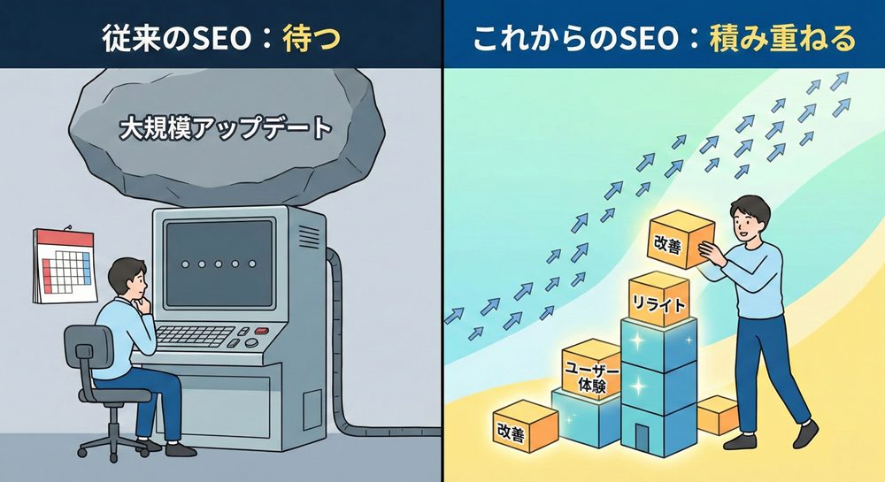 こうした姿勢こそが、小規模アップデートが常態化した検索環境において重要になります。
