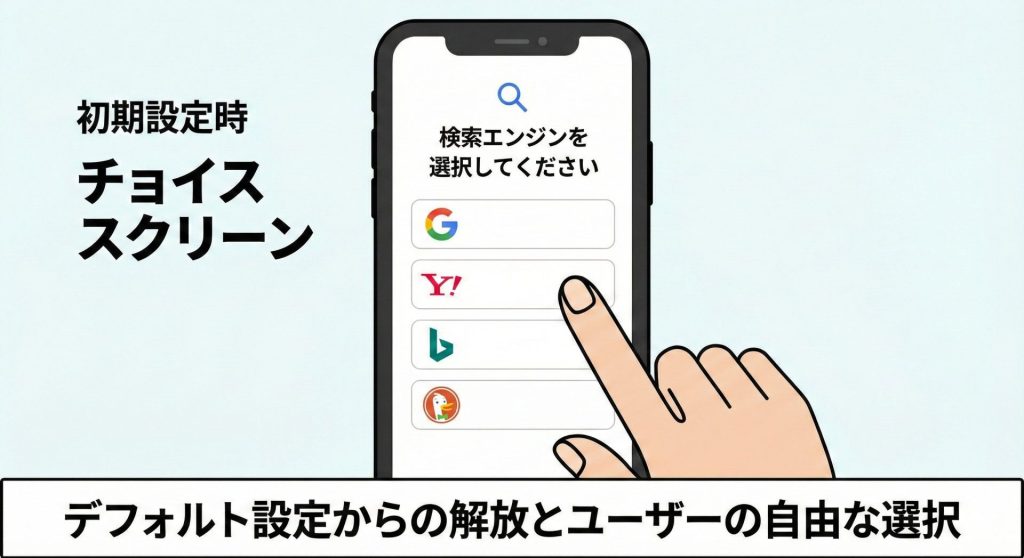 さらに、初期設定時に複数の検索エンジンから選択できる「チョイススクリーン」の導入が求められます。