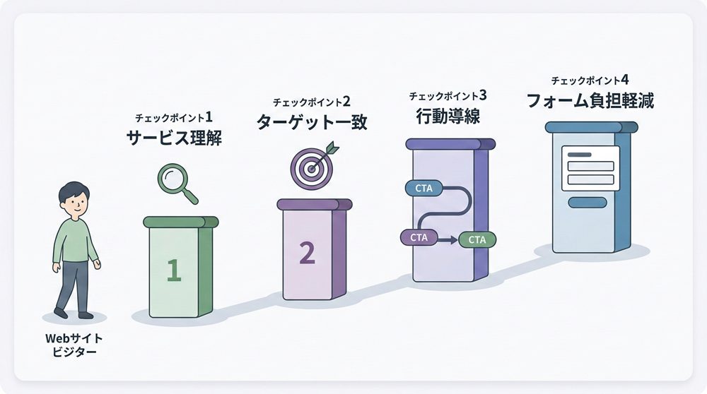 サービス内容の伝わりやすさ、信頼性、導線設計など、複数の要素がコンバージョン率に影響します。