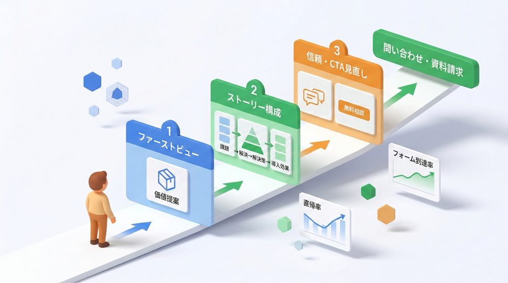 ファーストビュー、コピー、CTA、フォームなどを段階的に改善し、ユーザー行動の変化を確認することが重要です。