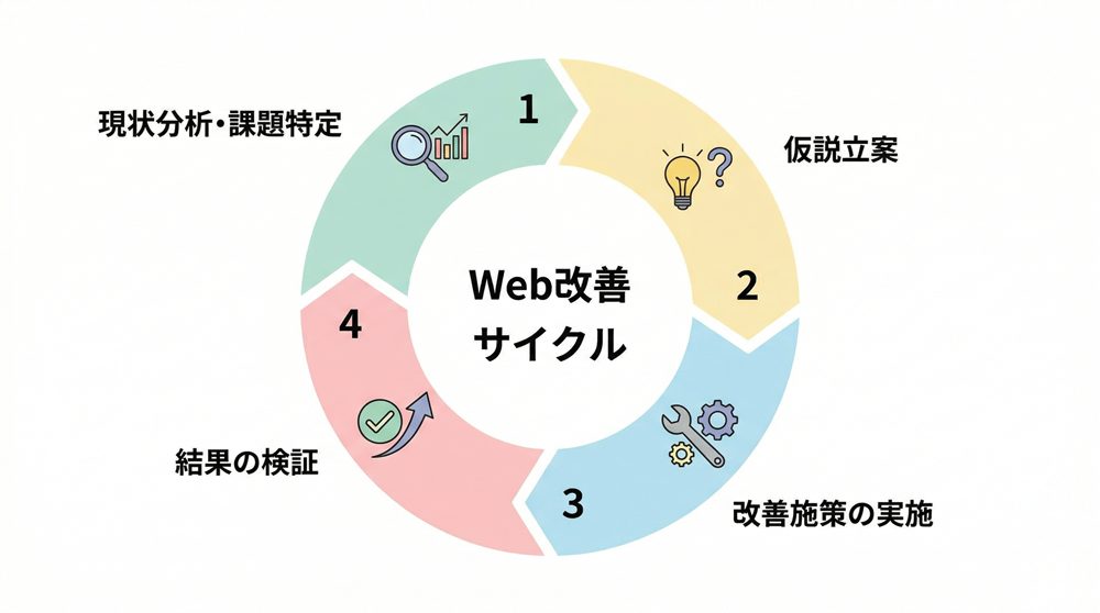 Web改善を効果的に進めるためには、一定のプロセスに沿って取り組むことが重要です。