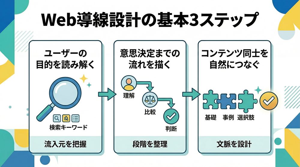 導線設計は思いつきで配置を決めるものではなく、ユーザー理解を起点に段階的に組み立てていくことが求められます。